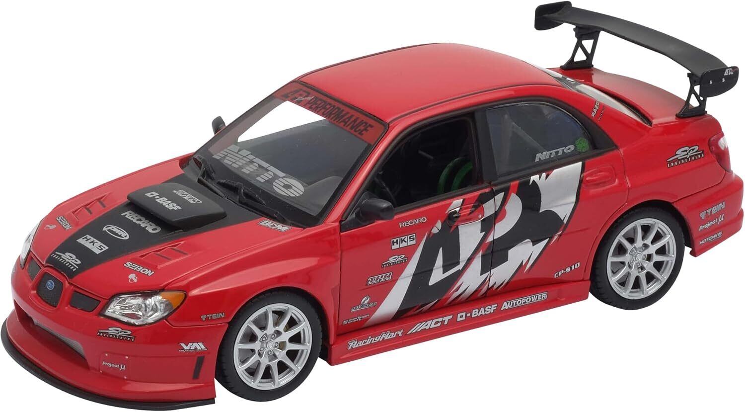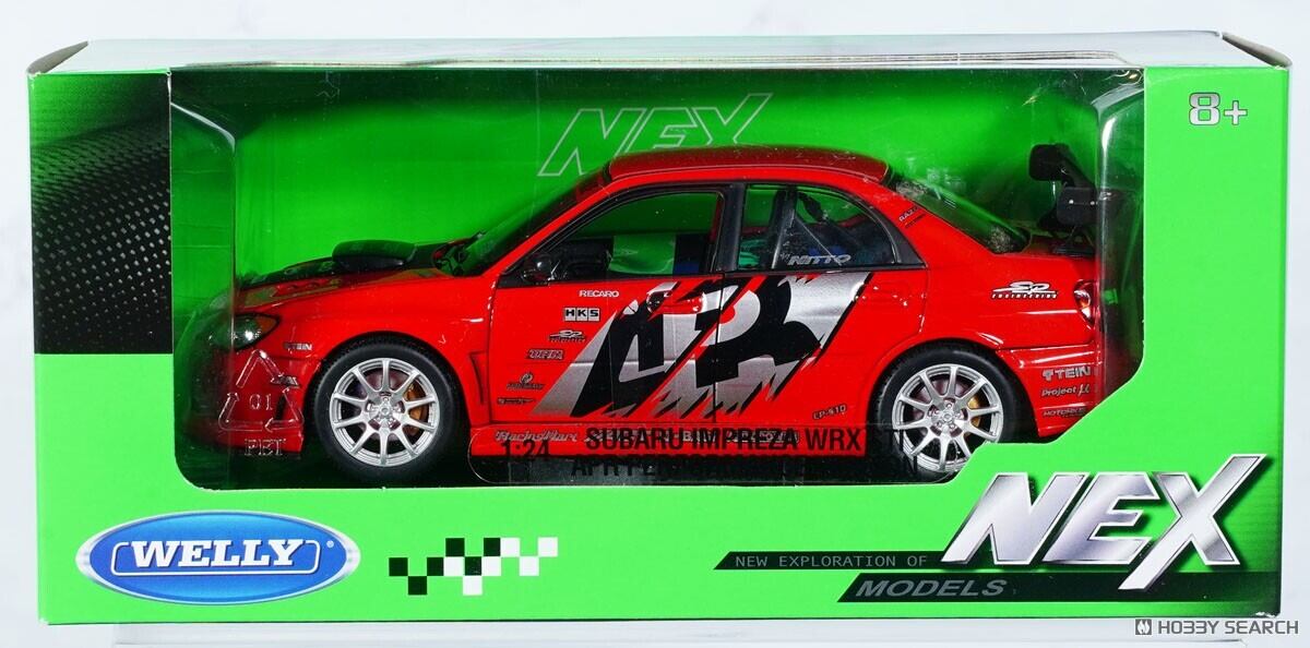 WELLYの1/24スケール・ダイキャスト完成品ミニカー。スバル インプレッサ WRX STI を、APRパフォーマンスバージョン(レッド)としてモデル化した商品です。