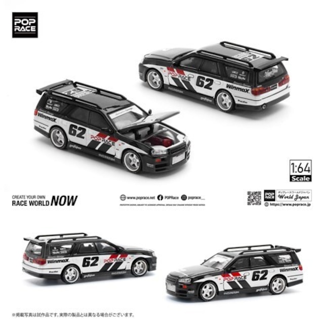 POP RACE 1/64 日産 ステージア SIMON’S GARAGE #62 ブラック PR640211
