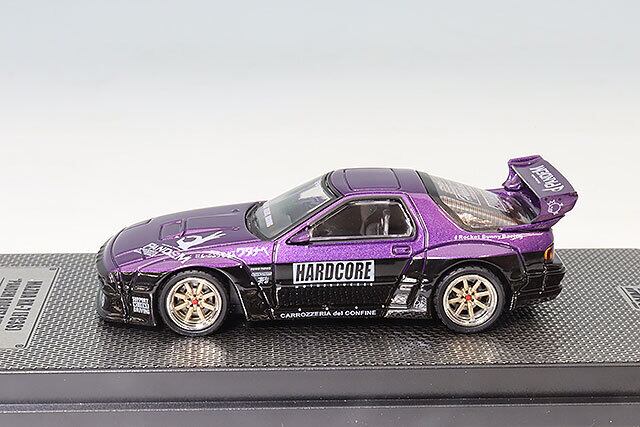 INNO Models(イノモデル)より、1/64 スケールの Mazda RX-7 (FC3S) “PANDEM ROCKET BUNNY” パープル のダイキャスト製完成品ミニカーです