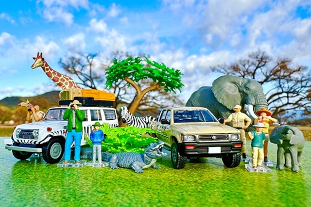 ゾウやワニ、ツアーガイド・観光客などのフィギュアや小物がセットになっています。
