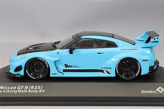 本商品は Solido(ソリド) から発売された 1/43スケール完成品ダイキャストミニカー で、人気スポーツカー 日産 GT-R R35 をカスタム仕様の LB シルエット 2019モデル(ブルー) として精密に再現したコレクターアイテムです。1/43という程よい大きさで GT-R R35 の特徴的なフォルムやボディライン を忠実に表現しており、カスタムシーンでも人気の高い LB(Liberty Walk)仕様 をモデル化しています。