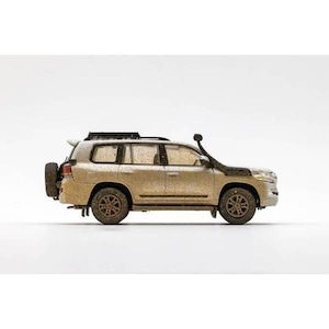 本商品は GCD(ゲインコーププロダクツ) より発売された 1/64スケールの完成品ミニカー、トヨタ ランドクルーザー LC200(バックパックver.) シルバー/マッドエフェクト(右ハンドル) を再現したモデルです。