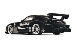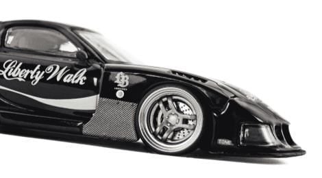 1/64 ミニカーサイズながら、RX-7 のワイドなシルエットとLBスタイルの迫力ある外観を表現した完成品モデルとなっています。